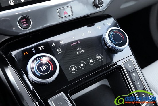 捷豹I-PACE内饰基于现有样式进行了很多改造,营造的科技感和新能源身份很搭。中控下半部分采用悬浮式设计,后方留有储物空间。车内配备上下两块屏幕,底部为空调和音响控制区。