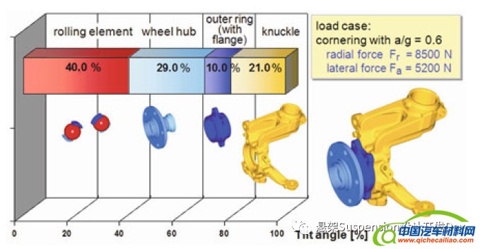 在0.6g的侧向加速度工况,转向节在整个轮边的侧倾刚度中贡献量为21%。