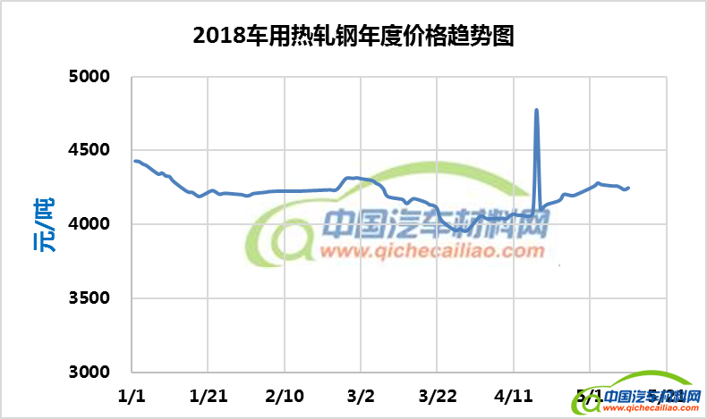 车用热轧钢年度价格趋势:2018.01.02-2018.05.11