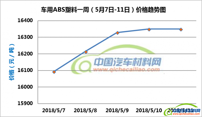 ABS塑料本周价格呈上涨趋势,一周内涨幅达185.71元/吨。车用ABS塑料本周均价为16281.43元/吨,较4月份均价上涨2.34%。
