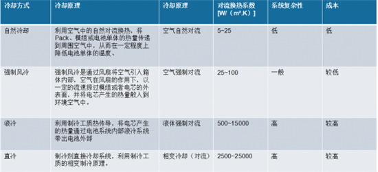 动力电池的冷却性能的好坏直接影响电池的效率,同时也会影响到电池寿命和使用安全。目前常规的冷却方式有四种:自然冷却、强制风冷、液冷、直冷四种,随着电池能量密度的提高,PACK热管理技术日益突出,未来液冷、制冷等冷却方式将会成为主流。