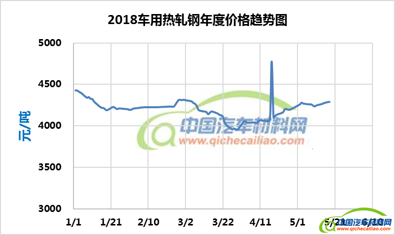 车用热轧钢年度价格趋势:2018.01.02-2018.05.18