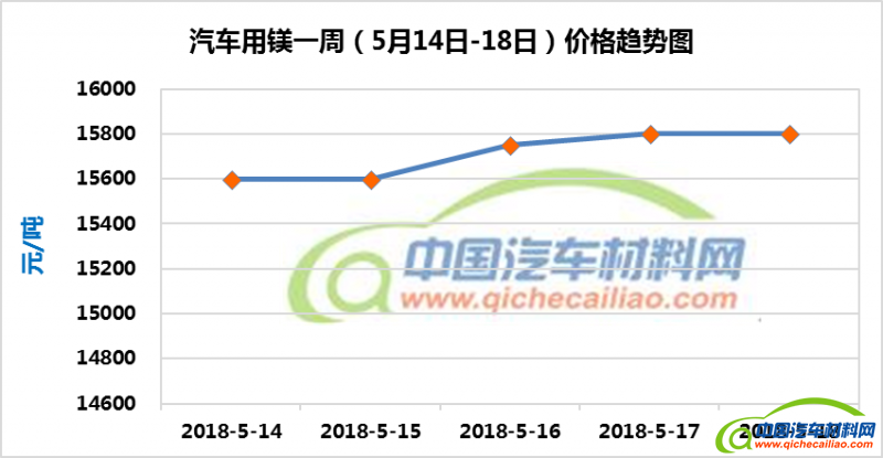 汽车用镁本周价格稳中有升,一周内有200元/吨的小幅增长。汽车用镁本周均价为15710元/吨,较上周上涨2.55%,较4月份均价上涨4.09%。