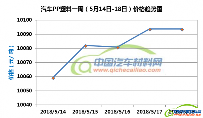车用PP塑料本周价格持续上涨,一周内涨幅为34.4元/吨。车用PP塑料本周均价为10081.5元/吨,较上周上涨0.67%,较4月份均价上涨3.65%。