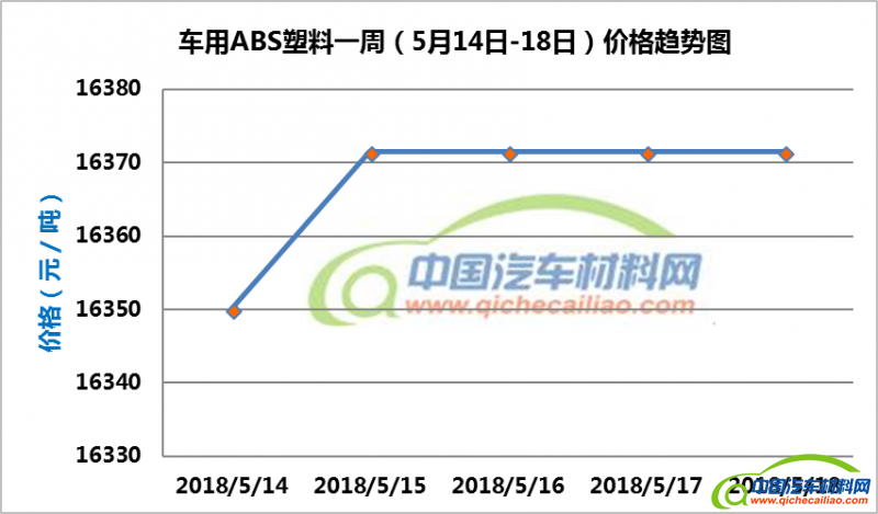 ABS塑料本周价格呈小幅上涨趋势,一周内涨幅为21.43元/吨。车用ABS塑料本周均价为16367.14元/吨,较上周上涨0.53%,较4月份均价上涨2.88%。