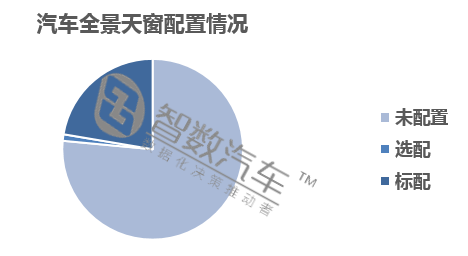 目前乘用车市场全景天窗配置率在23.51%左右,其中标配率为22.35%。