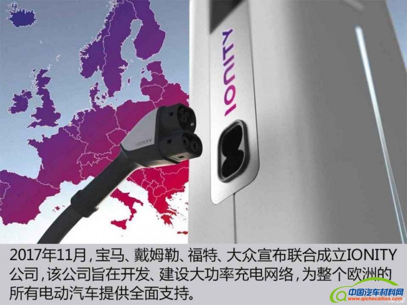 第二种答案是应用快充技术。只要电动车充电速度接近加油速度,车主也就不用担心单次续航里程的不足。IONITY就是这条路线的典型代表,宝马、戴姆勒、大众、奥迪、保时捷都加入了这个联盟,要在欧洲建设400个350kW的高速充电站。