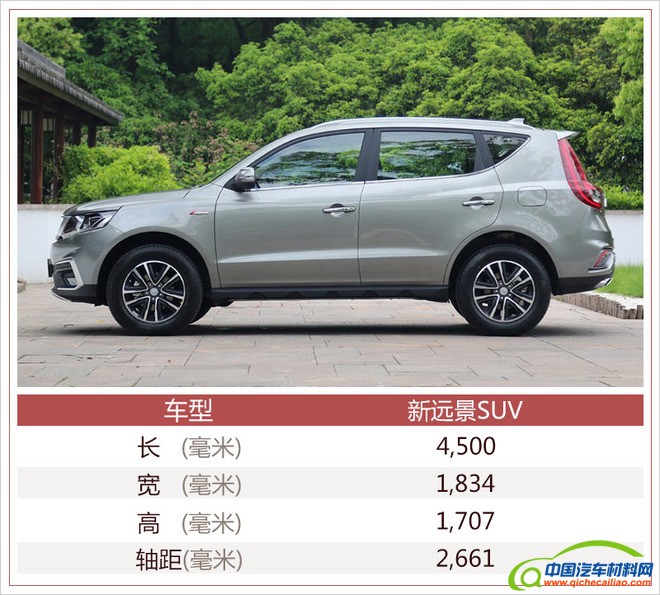 新远景SUV侧面线条更为硬朗,整体造型延续现款简约的风格,搭配新增的蝶翼式铝合金轮圈,更加动感。车身尺寸方面,新车的长宽高分别为4,500×1,834×1,707毫米,轴距达到了2,661毫米。