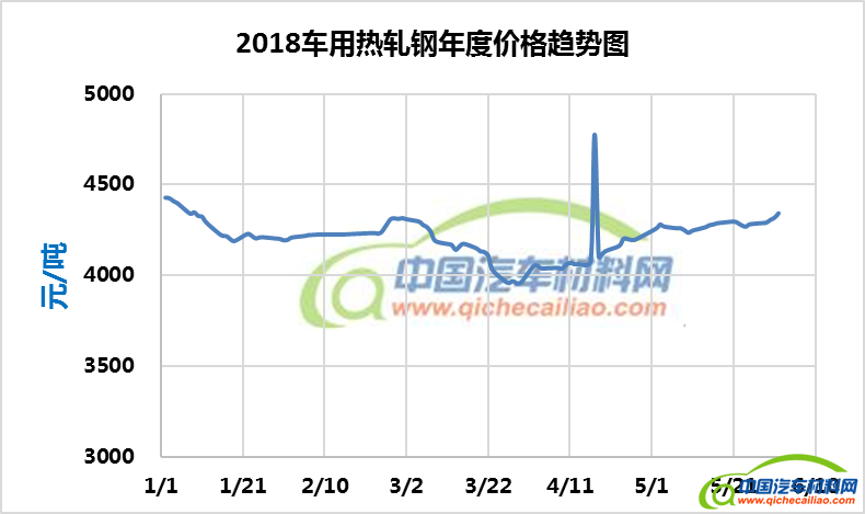 车用热轧钢年度价格趋势:2018.01.02-2018.06.01