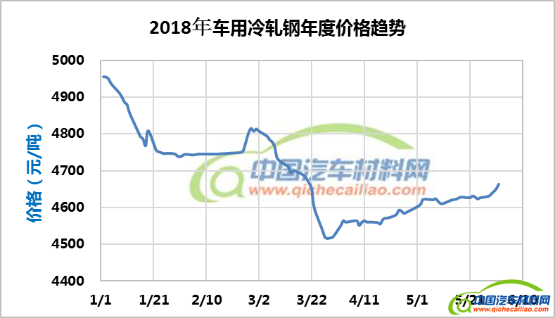 车用冷轧钢年度价格趋势:2018.01.02-2018.06.01