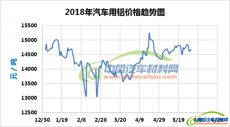 汽车用铝年度价格趋势:2018.01.02-2018.06.01