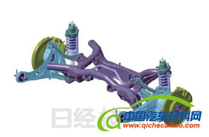 后悬挂上,从轮毂向前伸出的拖曳臂由球墨铸铁产品改为板材产品(图7)。车轮为铝制产品。选用充分减掉多余部分的形状,各轮均减轻0.6kg。