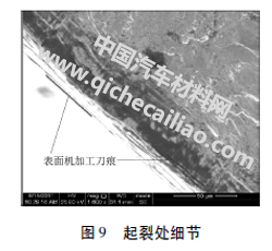 (2)起裂处的表面有较深的机加工刀痕,容易成为疲劳裂源。