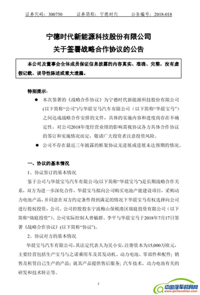 宁德时代7月17日发布公告称,“鉴于公司与华晨宝马是长期战略合作关系,双方为进一步深化合作,华晨宝马拟向公司购买电池产能建设项目,采购动力电池产品,并同意在双方约定条件得到满足的情况下华晨宝马有权选择向公司进行股权投资。”