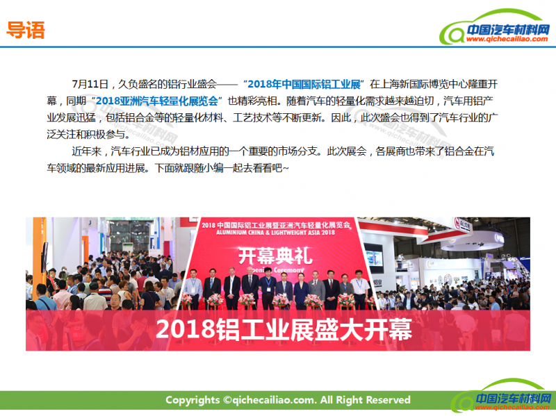核心提示:【重磅】盘点2018国际铝工业展 轻量化产品与技术