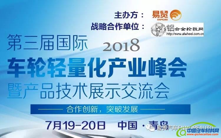 由上海易贸主办、中信微合金化技术中心博士路洪洲、中国汽车工业协会车轮委员会副秘书长王孝东作为大会主席,铝合金轮毂网作为战略合作单位,各行业参会代表大力支持的以“合作创新,突破发展”为主题的 2018(第三届)国际轻量化车轮产业峰会暨产品技术展示交流会于7月19日-7月20日在青岛康大豪生酒店隆重举行,现场吸引200+业内人士各界国内外车轮生产企业、整机厂、材料/技术/设备供应商、协会、咨询机构踊跃参与,大会的演讲嘉宾可谓阵容庞大,会议聚焦车轮轻量化行业市场发展趋势,共话车轮轻量化智能制造与应用。