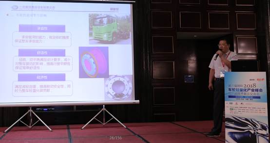 紧接着由一汽解放青岛有限公司底盘开发工程师卞继成就商用车车轮的技术需求做全面分析,演讲深入探讨了商用车车轮的特点及对整车相关性能的影响,车轮关键指标的要求及控制,车轮的技术发展趋势及难点。