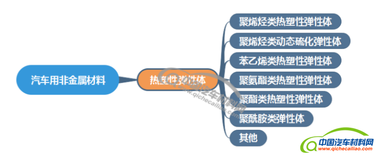 随着汽车行业的迅速发展,越来越多的前瞻性新技术、新材料得到广泛应用。车用非金属材料在践行绿色可持续发展,助力汽车轻量化、环保化及全产业链转型升级过程中发挥着关键作用。中国汽车材料网对其进行归纳整理分类如下图,车用非金属材料包含塑料、橡胶、热塑性弹性体等几大类(分类不妥及信息不全之处,敬请指正)。随着“以塑代钢”轻量化思路的深度应用,介于橡胶和塑料之间的热塑性弹性体(TPE)的研发与应用也越来越成熟、越来越广泛。本节主要从以下几个方面介绍热塑性弹性体。