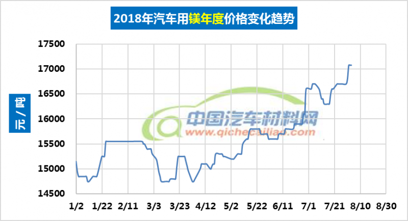 汽车用镁年度价格趋势:2018.01.02-2018.08.03
