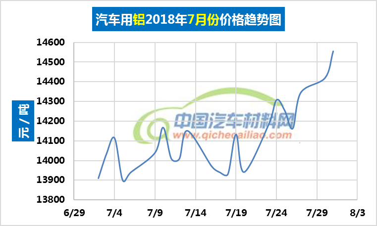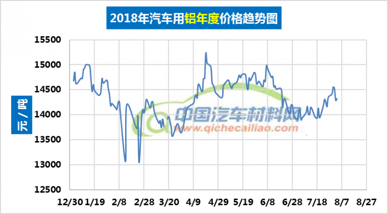 汽车用铝年度价格趋势:2018.01.02-2018.08.03