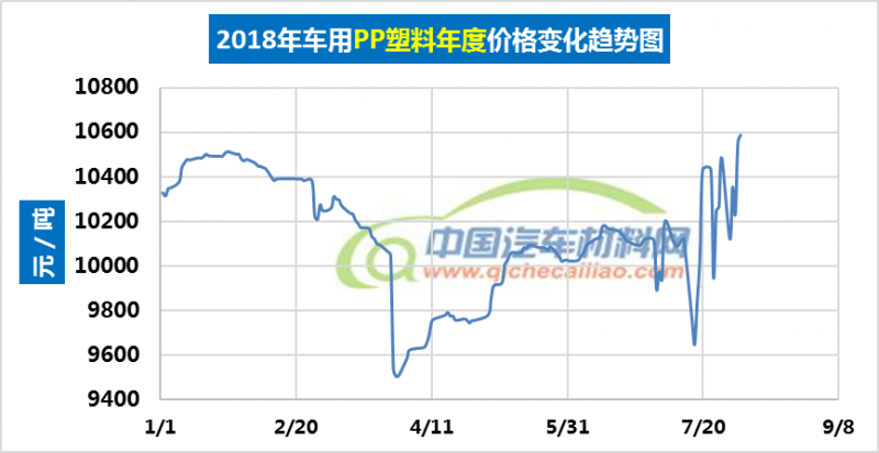 汽车用PP塑料年度价格趋势:2018.01.02-2018.08.03