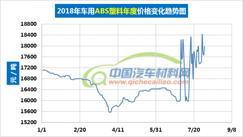 汽车用ABS塑料年度价格趋势:2018.01.02-2018.08.03