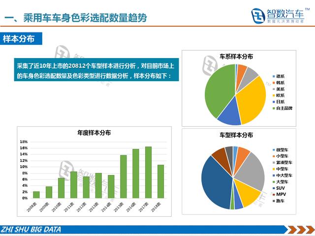 智数汽车大数据对近11年上市的两万余个车型样本的车身色彩进行了调研分析,形成了《乘用车车身色彩趋势分析》系列分析报告,本期为第二篇。