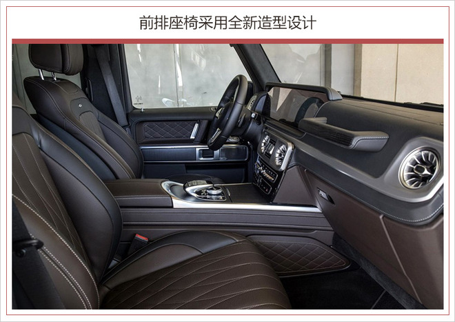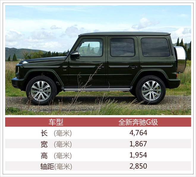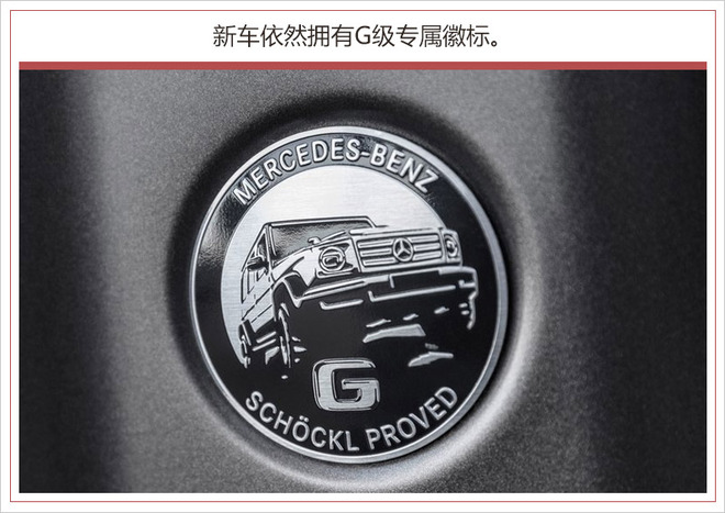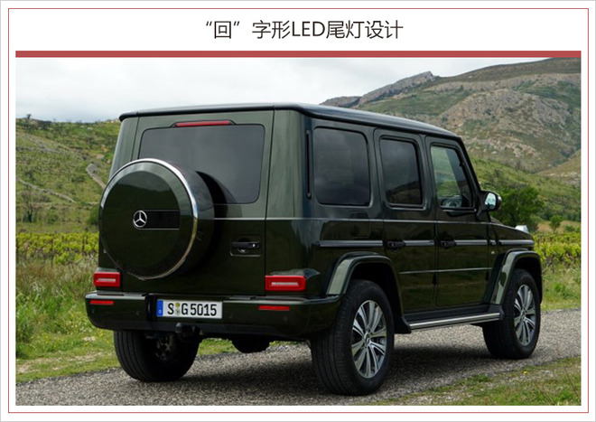 另外,全新G级车的长宽分别增加了53毫米和121毫米(海外数据),也使新车更加凸显经典的方盒子造型,同时也可提升车内空间。奔驰G级上鲜明的机械式门把手和颇具特色的关门声、结实的外部保护条、后门备胎,以及显眼的前部转向指示灯等这些标志性的元素都得到了保留。
