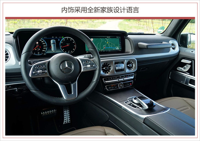 全新一代G级在内饰上也带来了较大的变化,一改此前机械式复古的设计风格。新车采用全新家族设计语言,线条较为平直硬朗造型简洁;中控台配以大量哑光金属材质装饰,提升内饰质感,全新设计的空调出风口造型精美。