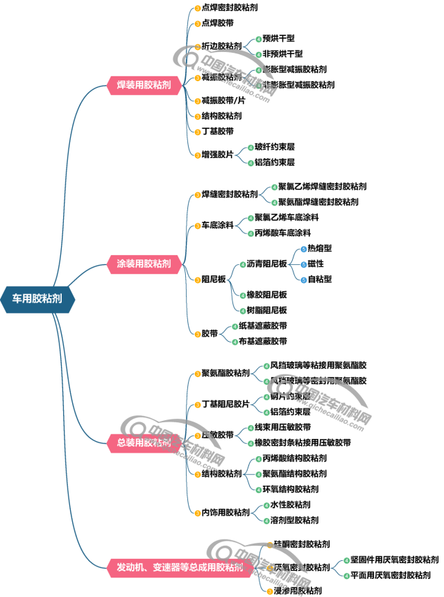 车用胶粘剂根据应用特性主要分为:焊装用胶粘剂、涂装用胶粘剂、总装用胶粘剂以及发动机、变速箱等总成用胶粘剂。