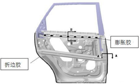 图 车门内板使用的折边胶和膨胀胶