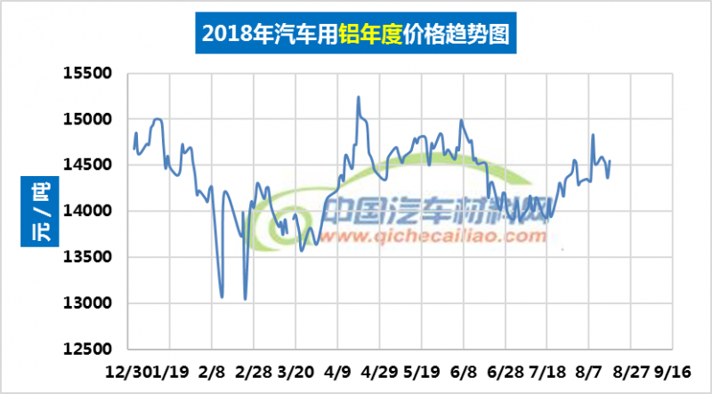汽车用铝年度价格趋势:2018.01.02-2018.08.17