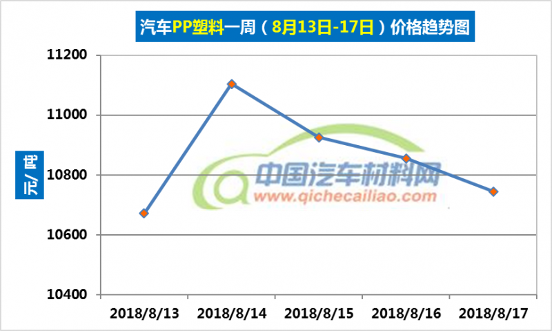 车用PP塑料本周价格变化如下:8月13日-14日,价格上涨,涨幅为433.34元/吨;8月14日-17日,价格下跌,跌幅为359.73元/吨。车用PP塑料本周均价为10860.65元/吨,较上周上涨0.65%,较7月份均价上涨7.50%。