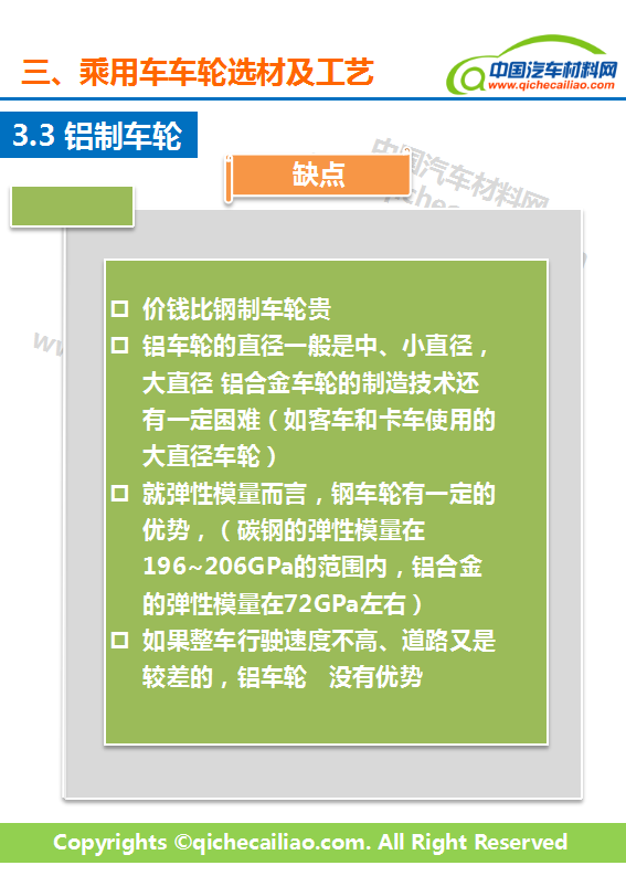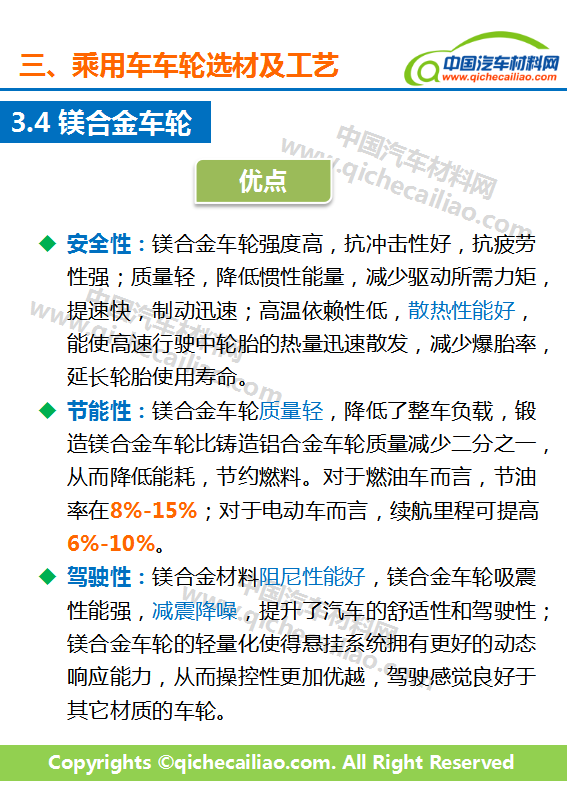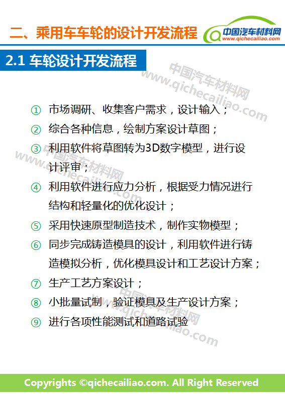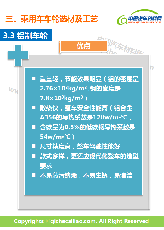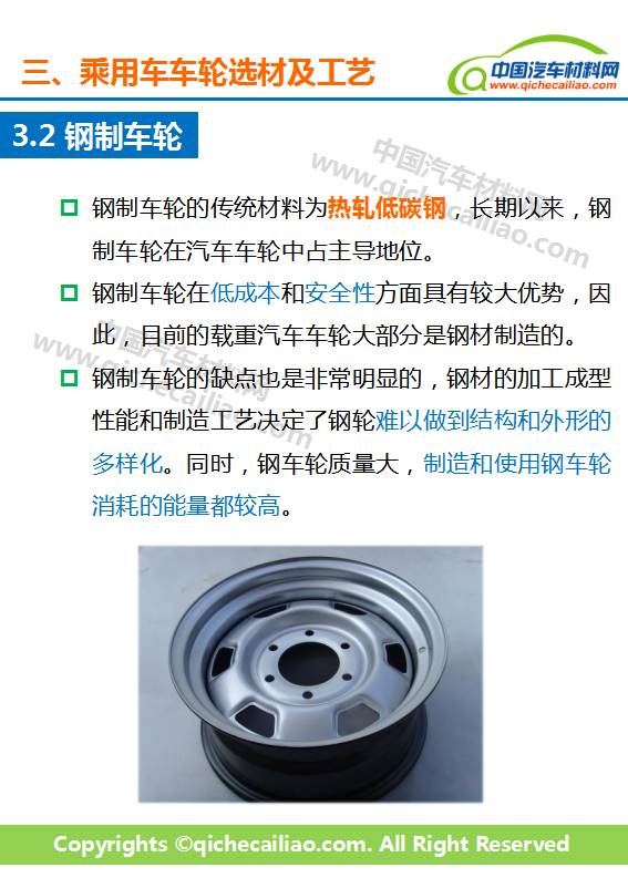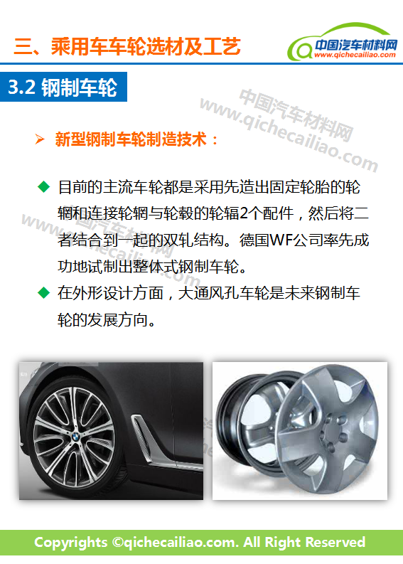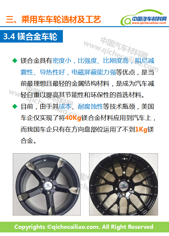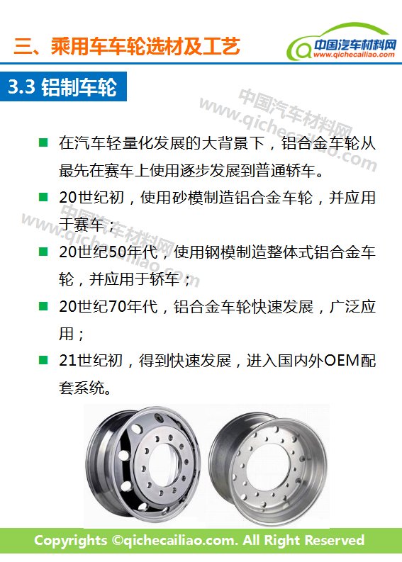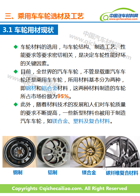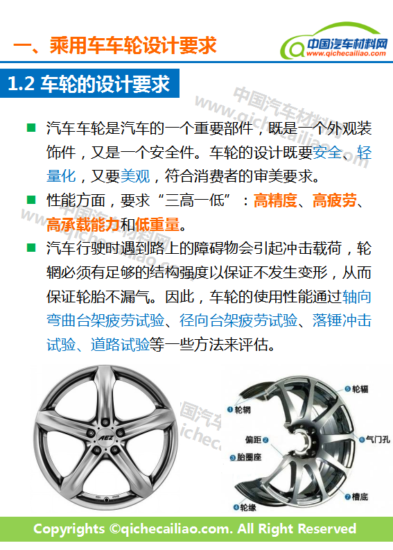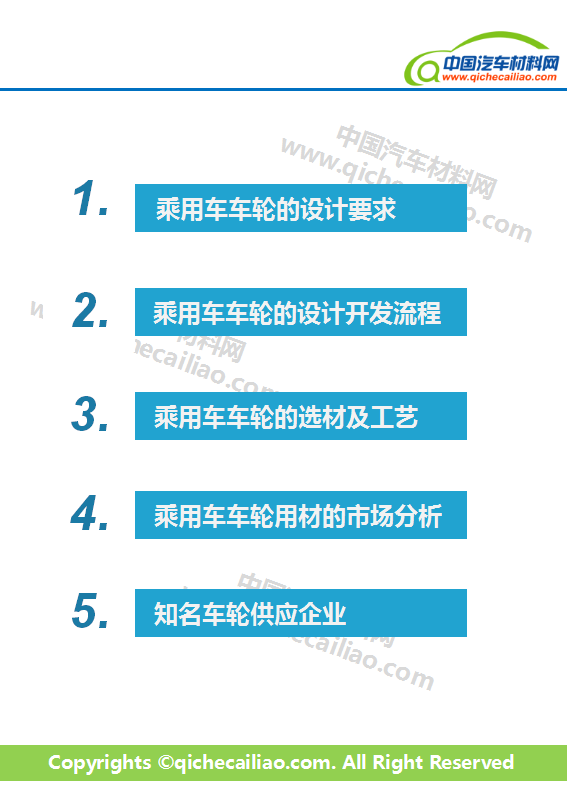 汽车车轮是汽车的一个重要部件,既是一个外观装饰件,又是一个安全件。车轮的设计既要安全、轻量化,又要美观,符合消费者的审美要求。性能方面,要求“三高-低”:高精度、高疲劳、高承载能力和低重量。本文主要从五个方面全面解析乘用车车轮选材趋势及产业链分析,希望对您有所帮助。以下是全文内容,欢迎阅读、转发。