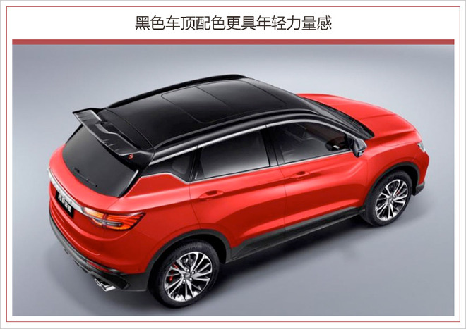 缤瑞还将推出运动版车型,该车最明显的变化在于撞色车身设计以及首次搭载了吉利全新的logo标识。新logo在吉利现有logo“六块腹肌”的基础上进行了扁平化设计,加上全黑配色设计,更具质感。A柱、车顶、大尺寸后扰流板运用了黑色处理,配合红色车身,使其整体视觉效果相当独特。