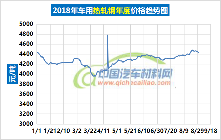 车用热轧钢年度价格趋势:2018.01.02-2018.08.31