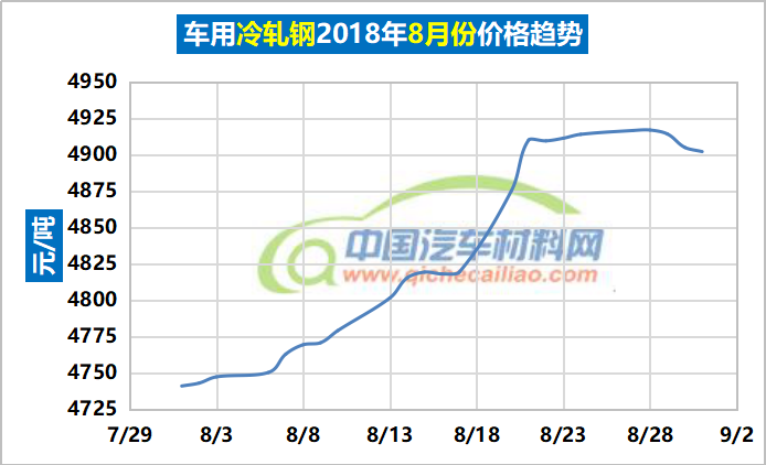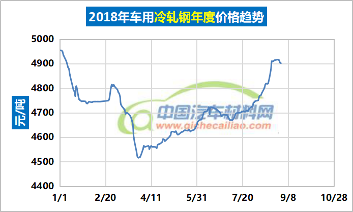车用冷轧钢年度价格趋势:2018.01.02-2018.08.31