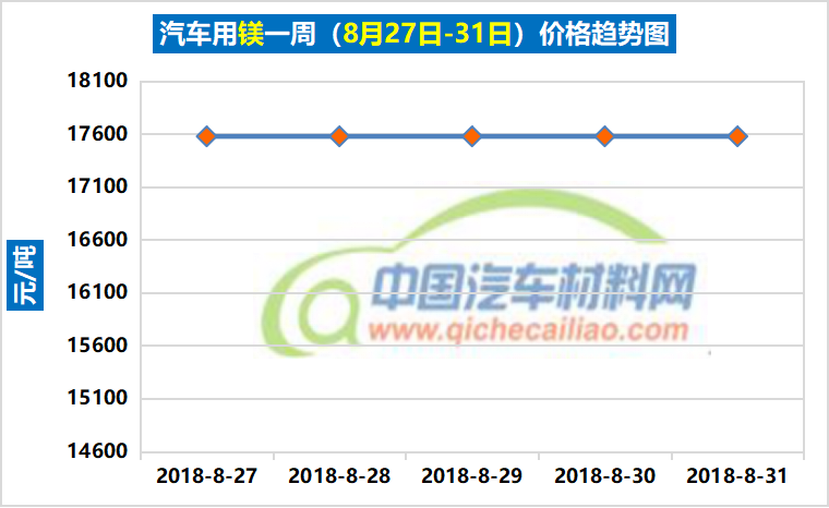 汽车用镁本周价格较为稳定,维持在17575元/吨,较上周均价上涨1.27,较8月份均价上涨0.01%。