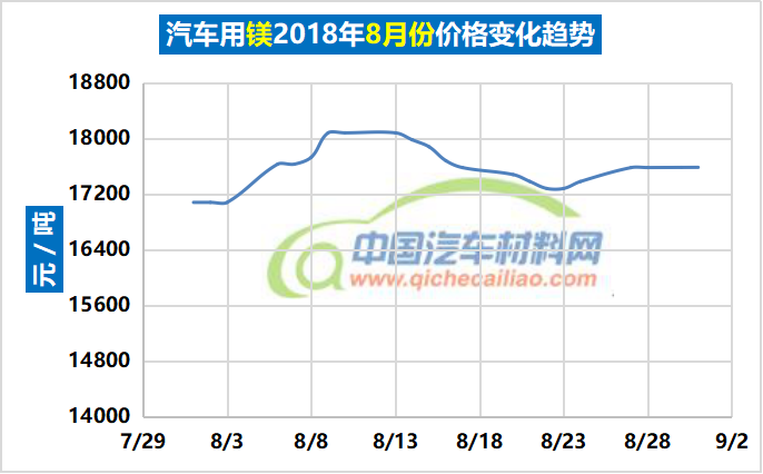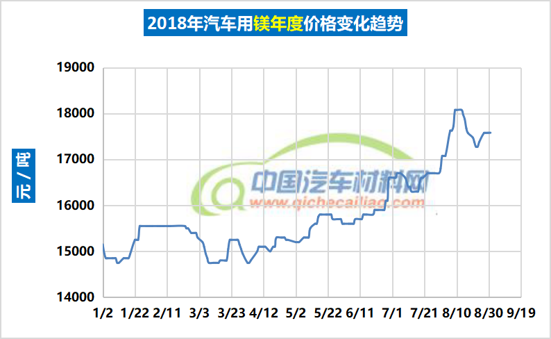 汽车用镁年度价格趋势:2018.01.02-2018.08.31