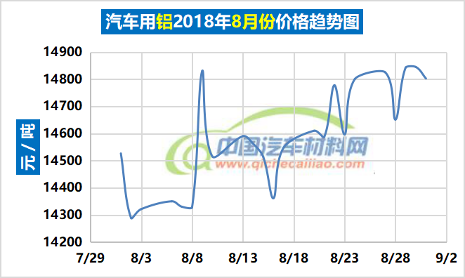 汽车用铝年度价格趋势:2018.01.02-2018.08.31