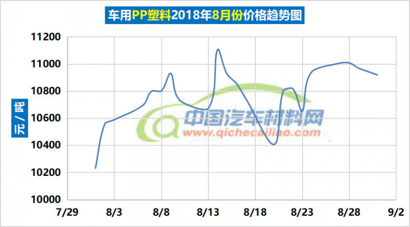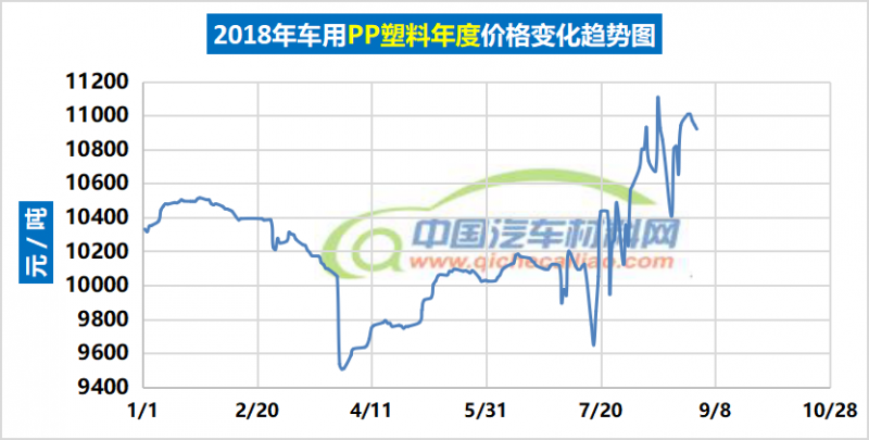汽车用PP塑料年度价格趋势:2018.01.02-2018.08.31