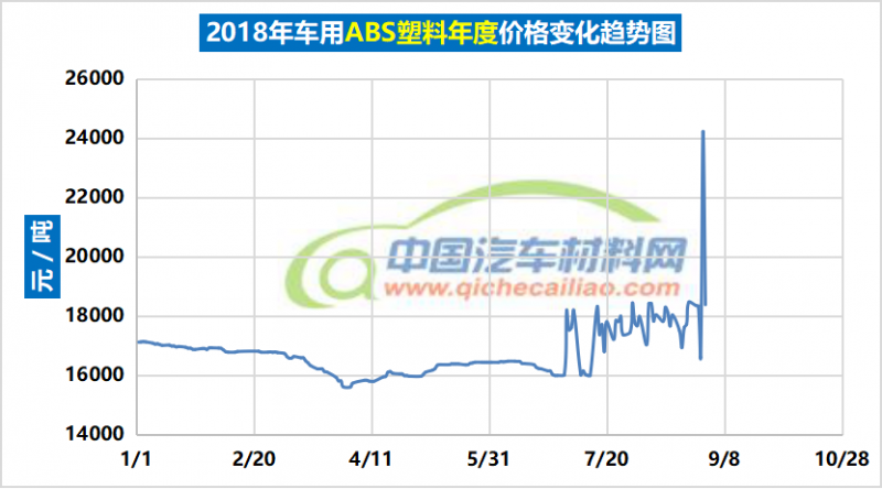 汽车用ABS塑料年度价格趋势:2018.01.02-2018.08.31