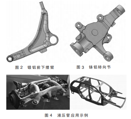 在进行产品设计开发时,我们应在保证产品结构及性能要求的前提下,尽量使用新的技术或工艺使结构及零部件中空、复合,以降低产品重量,实现轻量化目标。目前应用最广泛的成型技术主要有激光拼焊、内高压成形技术、热压成形、液压成形、粉末冶金、发泡铝成形等技术。对于特定的某一车型,在性能相同的情况下,对通过这两种方式分别生产的副车架从零件总成数量、模具费用、零件成本和零件重量等方面进行了对比,发现采用管材液压成形方式生产的副车架的零件数量为2个,小于冲压件总成的8个零件;在生产费用方面,采用管材液压成形方式生产的副车架要比冲压件减少60%,零件成本减少20%,而零件重量减少30%。由此可以看出,新工艺的应用能够在保证产品性能的情况下起到轻量化的作用。