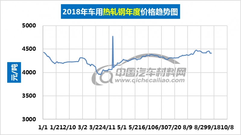 车用热轧钢年度价格趋势:2018.01.02-2018.09.14