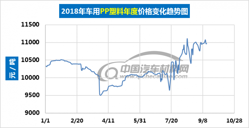 汽车用PP塑料年度价格趋势:2018.01.02-2018.09.14