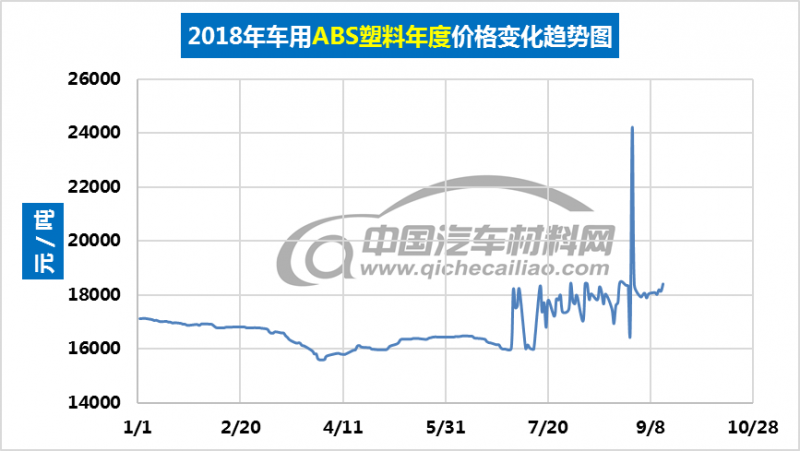 汽车用ABS塑料年度价格趋势:2018.01.02-2018.09.14