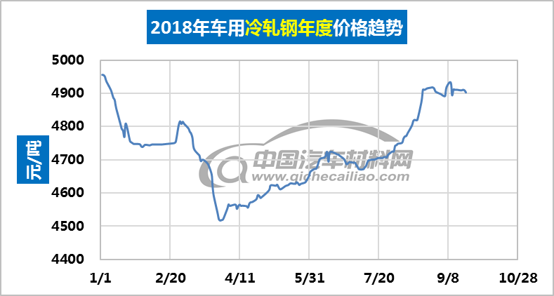 车用冷轧钢年度价格趋势:2018.01.02-2018.09.21
