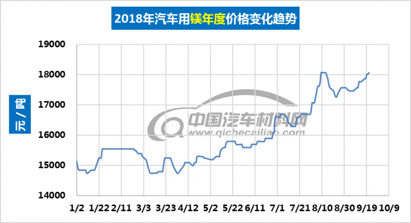 汽车用镁年度价格趋势:2018.01.02-2018.09.21