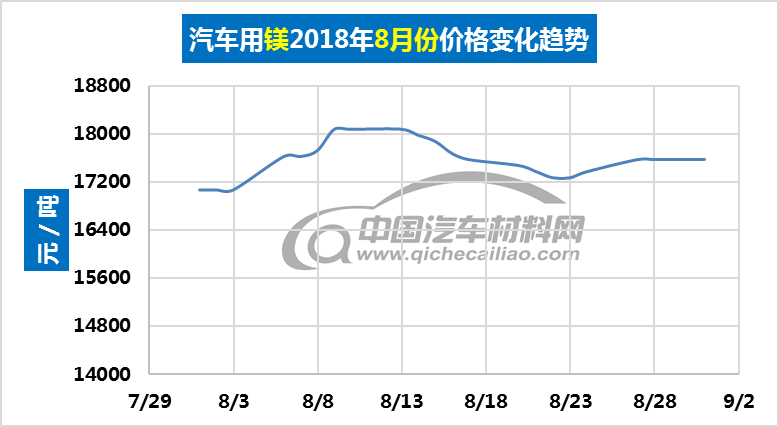 汽车用镁本周价格稳中有升,一周内涨幅为200元/吨;本周五价格涨至18075元/吨。汽车用镁本周均价为17975元/吨,较上周上涨1.58元/吨,较8月份均价上涨2.29%。