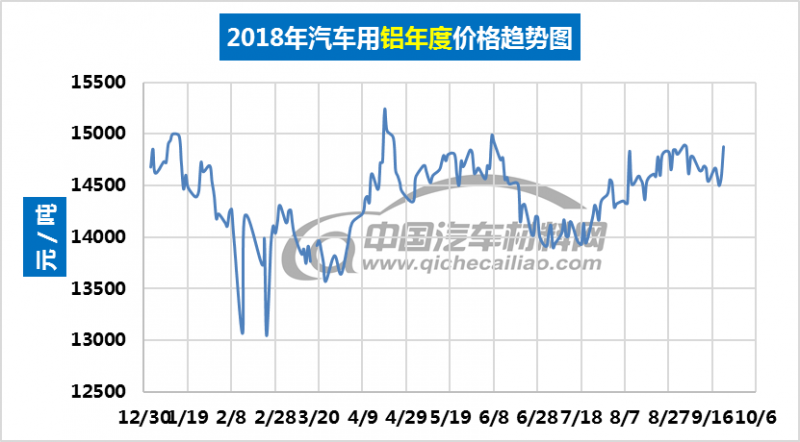 汽车用铝年度价格趋势:2018.01.02-2018.09.21